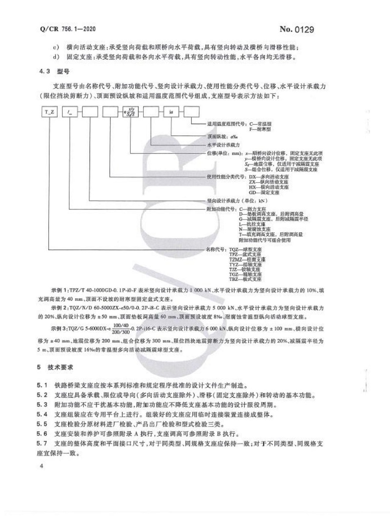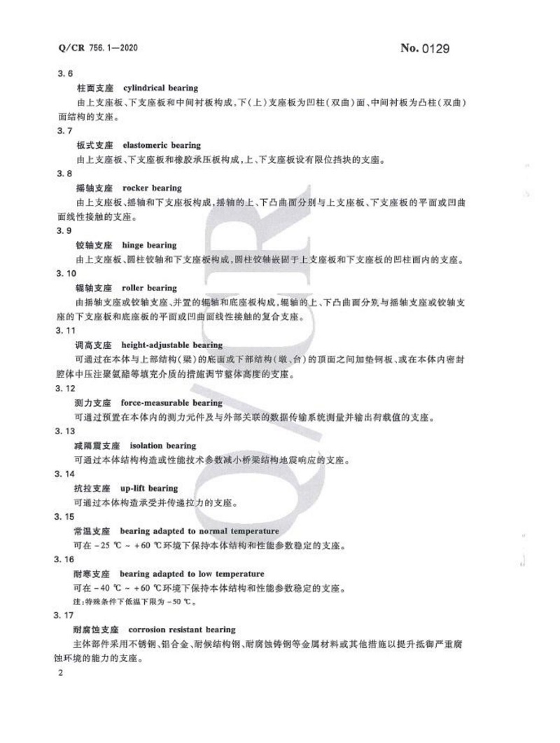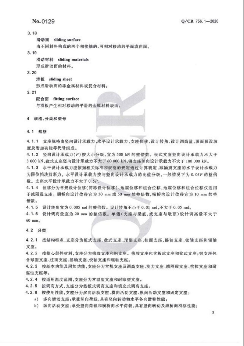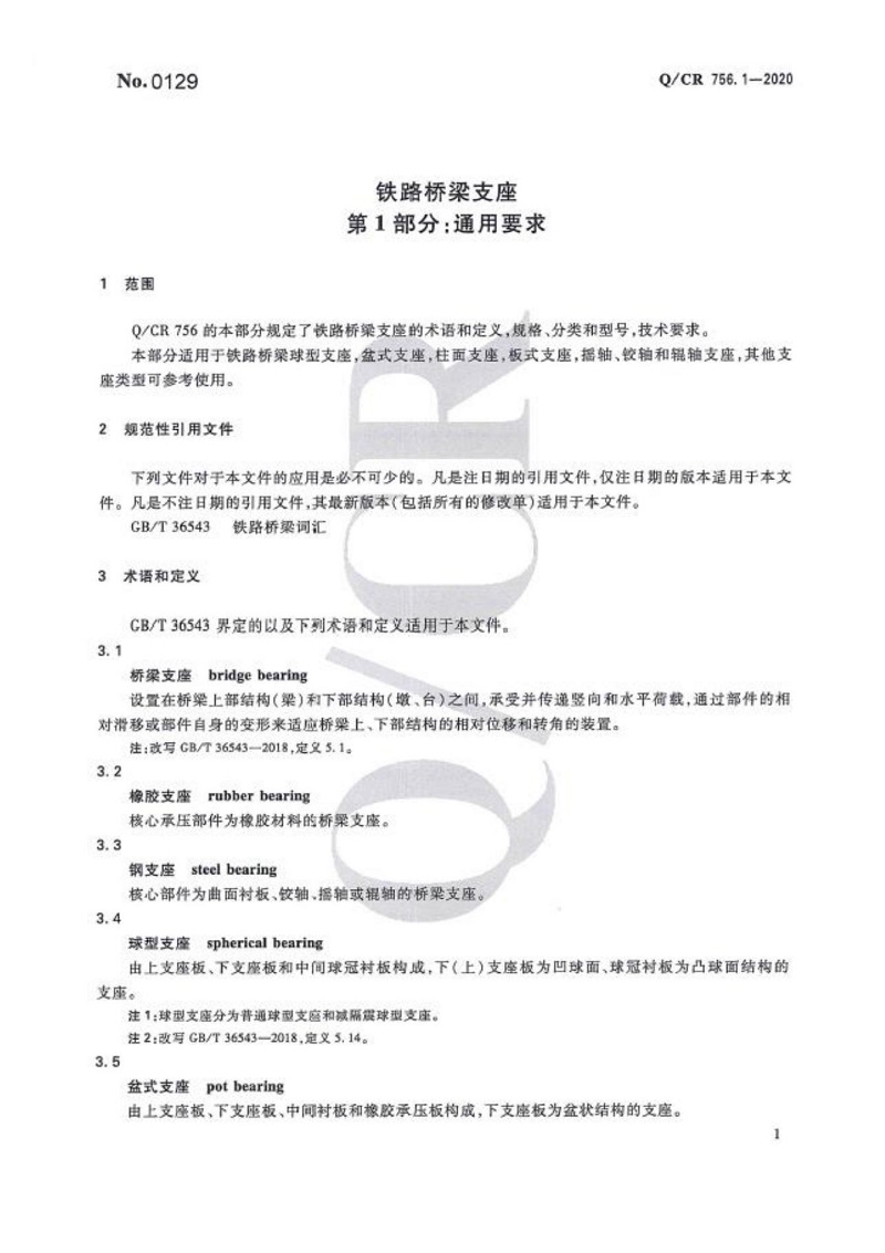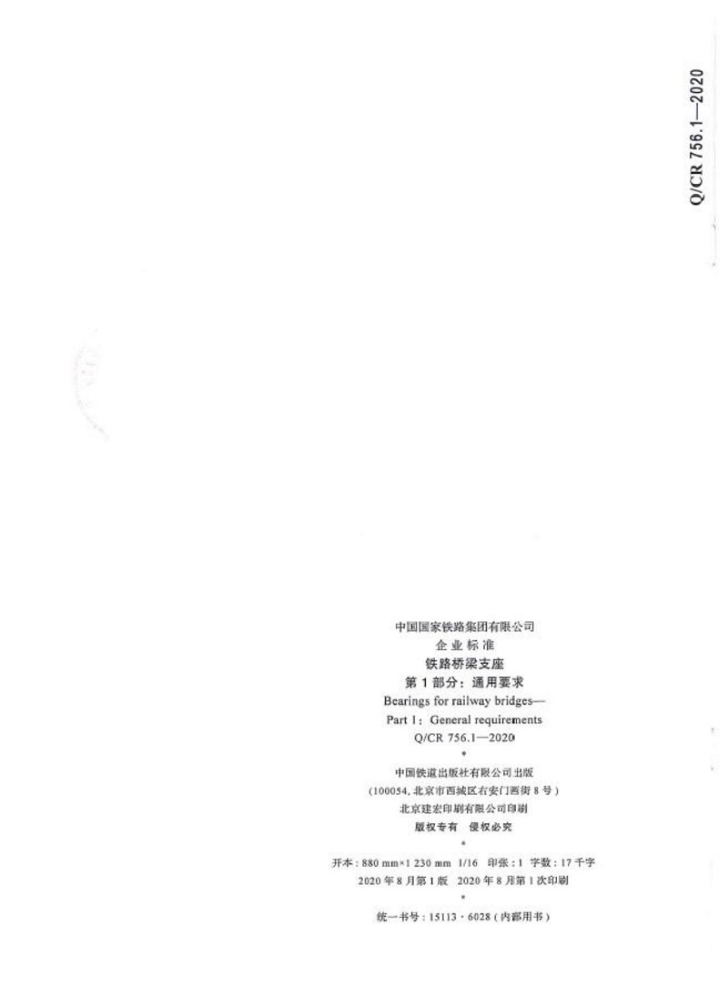 Q CR 756.1-2020 鐵路橋梁支座-第1部分:通用要求